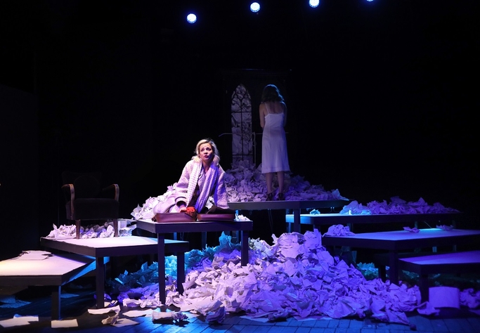 Tânăra și talentata regizoare Teodora Petre  este atentă ca totul de pe scenă să se completeze, să se îmbine conlucrând la o transmitere  puternică a mesajului. Scenografia și lighting designul Ioanei Pashca imaginează un spațiu năpădit de foi de hărtie, mototolite, rupte sau întregi, crâmpeie de viață uitate, readuse la o altă viață prin puterea cuvântului și a amintirii. Niște trepte asimetrice dau spre o fereastră ferecată, dar tu  simți că dincolo de ea se nasc cerul și marea, elemente definitorii ale unui ținut mitic, evocat, adulat, urât, Ushuaia cea de la capătul lumii. Luminile, sunetul, proiecțiile, muzica astrală (din nou  originalitatea lui Cezar Antal compozitorul, de această dată) se încorporează inspirat în conturarea ideii de început și sfârșit de lume între care viața este pur și simplu viață.