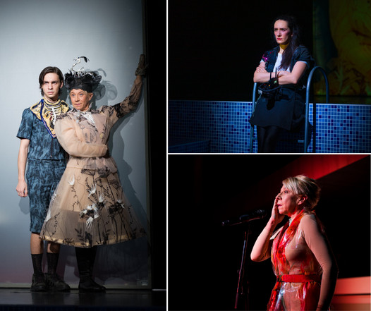 Micro-universul propus de scenografa Raluca Alexandrescu utilizează la capacitatea maximă spațiul de la Teatrelli și delimitează două spații narative. Primul, cel mai inspirat conceput, o adevărată metaforă, este o casă colivie ce ascunde trecutul, viața, obsesiile și spaimele Ioanei, fiind populat de bibelouri vetuste pe care nimeni nu are voie să le atingă, simboluri multiple ale unei menajerii umane piedute în timp. Al doilea imaginează o piscină secată în care personajele se zbat să nu se înece în propriile traume, Proiecțiile video ale Anei Cârlan, jocul de lumini conceput de Ștefan Vasilescu susțin ideile regizoralo-scenografice, devenind atuuri pentru conturarea complexității personajelor. Sugestivă scena în care Alina dezvăluie secretele descoperite ale copilăriei nu direct în fața spectatorilor, ci printr-o filmare cu ocazia decernării unui premiu. Muzica lui Xenti Runceanu inteferează inspirat cu scenele și proiecțiile, fiind un adjuvant pentru înțelegerea subiectului, a subtilităților relațiilor dintre personaje.