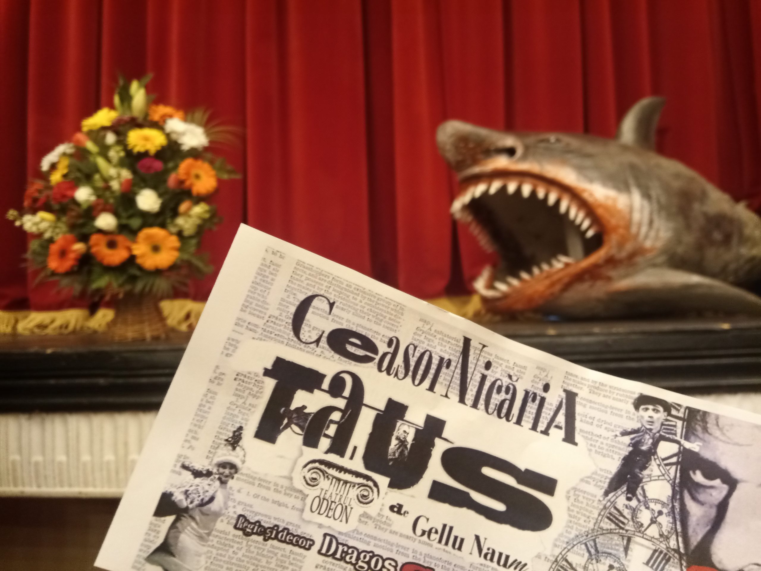 „Ceasornicăria Taus”, ultima premieră a Teatrului Odeon în regia lui Dragoș Galgoțiu, renunță la poveste, optând pentru o pictură suprarealistă. De fapt, ție, spectatorulului, ți se pune în mână o pensulă pe care o înmoi în ceea ce vrei tu: în iubire sau în așteptare, în copilărie sau în moarte, în infinit sau în aproapele de pe lângă tine. Tu, numai tu alegi să fii într-un simplu atelier de reparat ceasuri sau în burta balenei, în purgatoriu sau în vis.