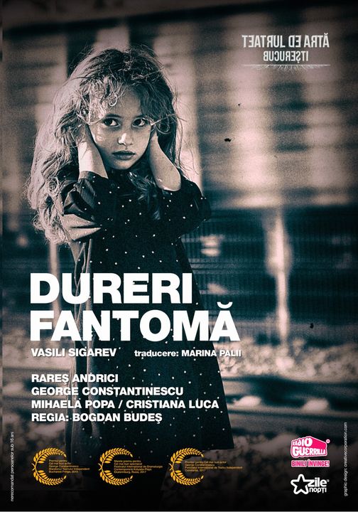 Durerea pute a salam rânced și se îmbibă precum alcoolul în sângele nesătul. Durerea se scuipă în coji de semințe cu miez de venin și electocutează precum un cablu de înaltă tensiune. Durerea se amăgește că fulgerul nu poate cădea de două ori în același loc și că există ochelari sub care se poate ascunde. Durerea șuieră ca un tramvai deraiat de pe șine și se zbate în coșmaruri, oricât de albe ar fi cearceafurile în care se culcă. Durerea nu ațipește niciodată, cutreieră minți și inimi, intersectează viul cu moartea din noi și mereu așteaptă finalul, un Godot ce nu va veni niciodată. Așa se trăiește durerea pe scena Teatrului de Artă, în spectacolul „Dureri fantomă” concentrat, visceral, într-un timp comprimat, într-un spațiu fără granițe și fără orizont.