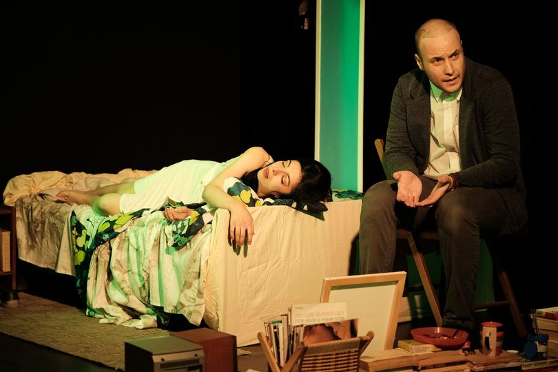 Seară. În holul de la intrare așteptarea te frământă în acordurile unei muzici stranii, incerte, care se aude dinspre scenă. Ești îndrumat în sala de spectacol pe un hol îngust, destul de întunecat, în timp ce muzica te cuprinde pe de-a-ntregul. Te așezi și privești spre scenă, un spațiu mic, o cameră austeră în care sunt multe cărți așezate ca un zid de apărare, un cuier, o măsuță, un pat mare. Îți atrage atenția lenjeria lui imprimată cu forme de fluturi imenși, multicolori. Intempestiv, un bărbat intră în cameră ținând în brațe trupul unei tinere cu mâinile și picioarele legate. Începe povestea. Începe goana după fluturi, după iubire, după libertate, după sens.