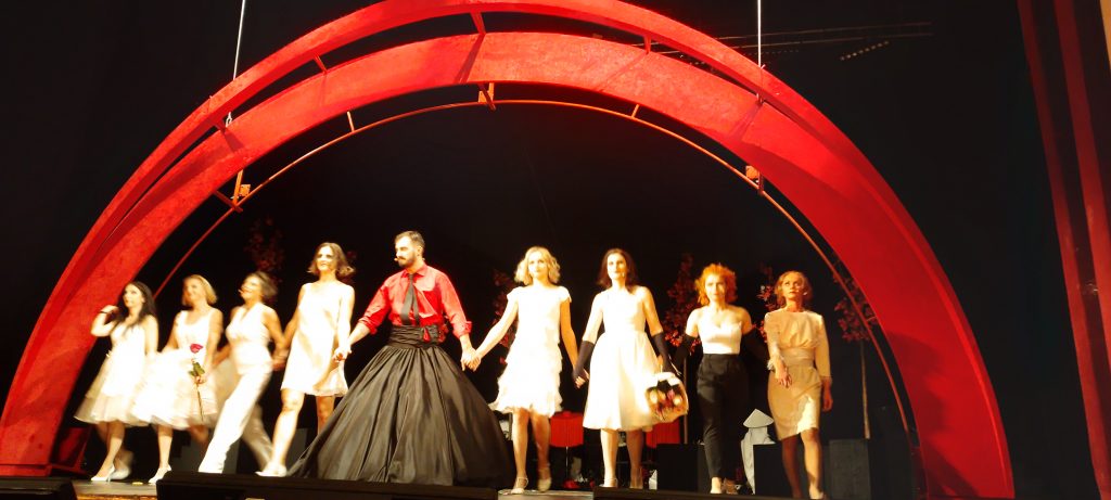 Când se trage cortina ai impresia că nimfele Parnasului s-au pus de acord să te convingă că în Eden cerul este roșu și copacii amurgesc a toamnă. Siluetele lor albe se decupează ca niște fâlfâiri de înger căzut, gata să să își ispășească pedeapsa trufiei. Trufia și vanitatea, ambiția și dorința de mărire, orgoliul și egoismul, ele sunt păcatele capitale. Treptele negre se urcă și se coboară , locul pe podium este limitat, iar în cer cu adevărat inaccesibil.