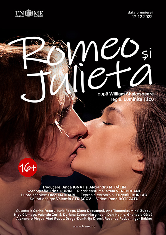 Romeo interpretat de tânărul Nicu Ciumașu conferă personajului său frământare și nesiguranță. El interacționează inteligent cu grupul său de prieteni, este rupt de familie cu care stabilește relații pline de ambiguitate. Întâlnirea cu Julieta nu îl exaltă, mai degrabă îl sperie, îl năucește. Aceeași senzație de uimire adolescentină în jocul Corinei Rotaru, a cărei experiență își spune cuvântul, dominând din punct de vedere al acurateții actului artistic scenele dintre cei doi îndrăgostiți. Ca să înțelegem cheia jocului Corinei, una ludică, răsfățată, frivolă, ar trebui să amintim vârsta personajului, 14 ani. Sentimente primei iubiri sunt noi pentru un adolescent şi nu va şti cum să se joace cu ele. La această vârstă, sunt în perioada descoperirilor, experienţelor, pot trata iubirea ca pe o joacă sau chiar ca pe un lucru foarte serios. Îndrăgostit de Romeo sau de o himeră, de un ideal, de un imago sau de sine însuşi, Julieta este înainte de toate îndrăgostit de iubire.
