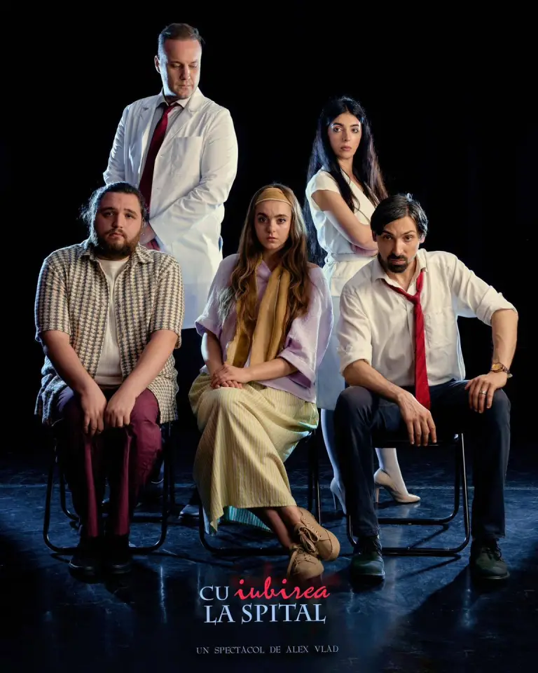 Spectacolul regizat de Alex Vlad nu este o urmare a longevivului Clinica sinucigașilor, având propria sa individualitate. „Cu iubirea la spital” pornește de la o premisă care, la prima vedere, provoacă zâmbetul: într-o societate ușor distopică, iubirea este considerată o afecțiune periculoasă, contagioasă, iar cei atinși de ea sunt internați pentru tratament. Însă dincolo de mecanismul comic, textul Gabrielei Mihalache construiește o satiră limpede despre felul în care contemporaneitatea încearcă să administreze, să controleze și să eticheteze emoția.